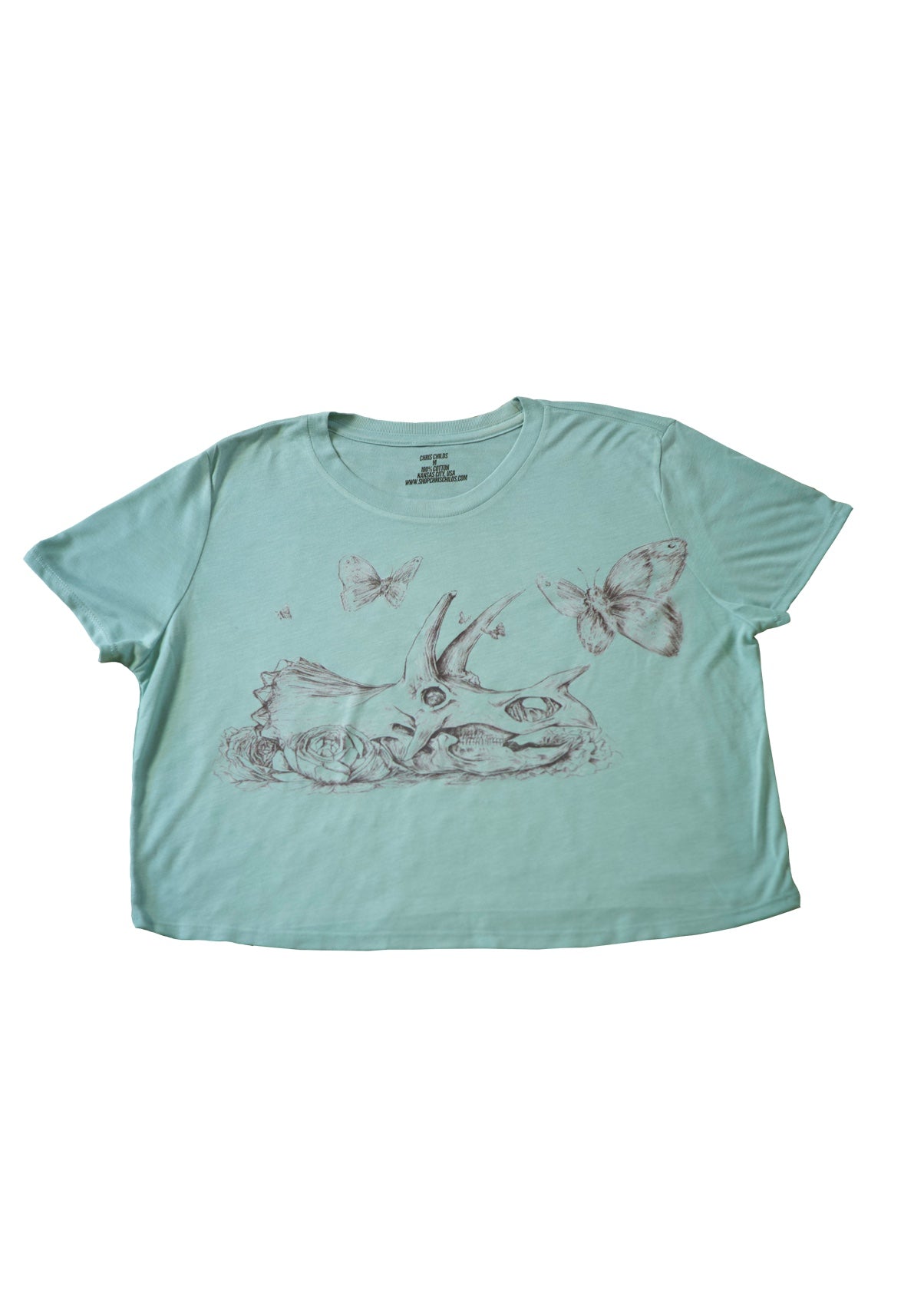 Memento Mori Triceratops & Butterflies Crop Seafoam